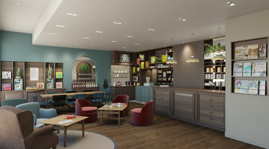 Une réception façon lieu de vie pour des petits-déjeuners vitaminés, des quatre-heures gourmands offerts (avec gâteaux maison, café et thé en vrac Folliet) et des mets de chefs sous enseigne Les Boccos, à réchauffer. Même ambiance chaleureuse dans les étages, mélange de rétro et de contemporain : moquette vintage Full Bloom dans les couloirs et dans les 48 chambres (dont deux PMR, 10 triples et trois quadruples), Toile de Joie by Pierre Frey au mur (impression à l'encre), table de chevet Icone en hevéa massif teinté noyer, poignée inox de la maison Saulaie, et téléphone à cadran !